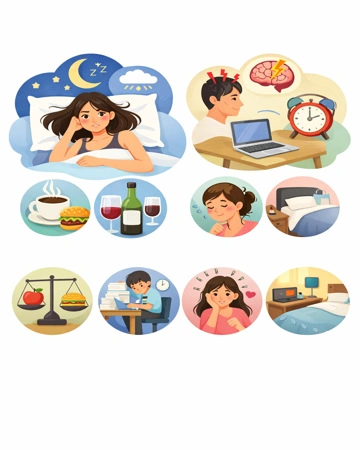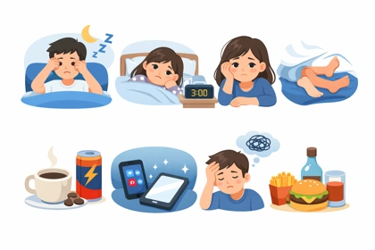 늦은 저녁 식사나 카페인 섭취는 잠드는 시간을 늦추는 원인으로 알려져 있습니다. 특히 취침 전 몇 시간 동안의 섭취 습관은 수면 질에 직접적인 영향을 줄 수 있습니다.