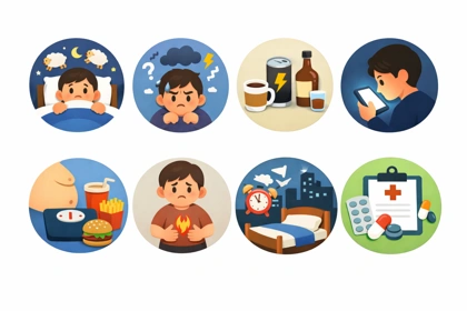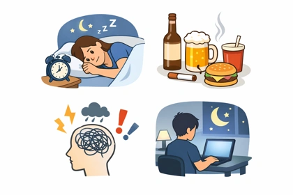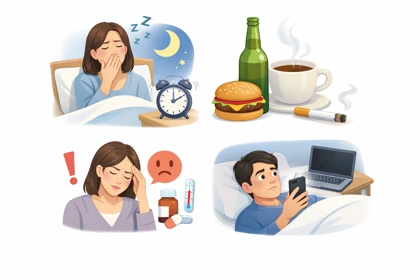 취침 시간, 빛 노출, 카페인 섭취 같은 생활 리듬 요소를 먼저 확인하는 것이 일반적인 점검 기준이 됩니다.