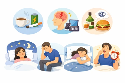 수면 문제는 특정 질환보다 생활 리듬 변화에서 시작되는 경우가 많습니다. 취침 시간, 빛 노출, 식사 시간 같은 요소는 생각보다 수면 상태에 큰 영향을 줄 수 있습니다.