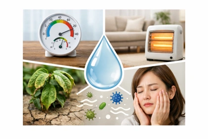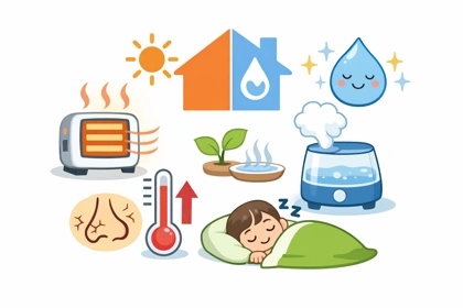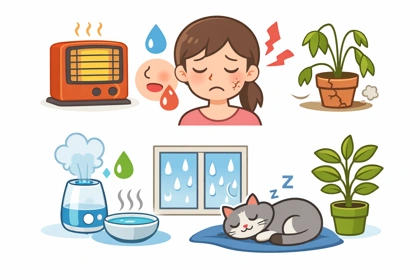 난방은 공기를 데우는 과정에서 상대습도를 낮춥니다. 같은 수분량이라도 온도가 오르면 건조하게 느껴지며, 밀폐된 공간일수록 변화는 더 빠르게 나타납니다.